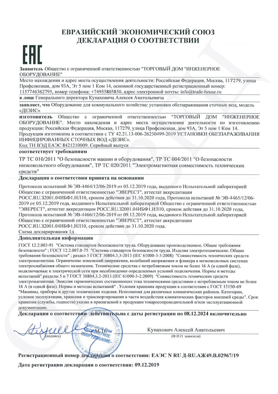 "ДЕЗИС" - надёжная установка для обеззараживания инфицированных стоков. Широко применяется в туберкулёзных диспансерах и медучреждениях, где лечат инфекционные заболевания. Подходит для других аналогичных объектов.